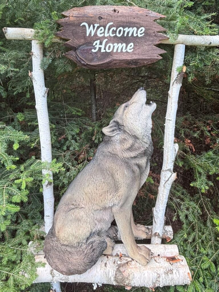 That evening, Lety and OdeMakwa came home from town with a picture they took of a Wolf statue in someone’s front yard that we had passed by hundreds of times but never noticed. That discovery was too serendipitous to write off as mere chance, so Tamarack immediately went to town to check out the statue.